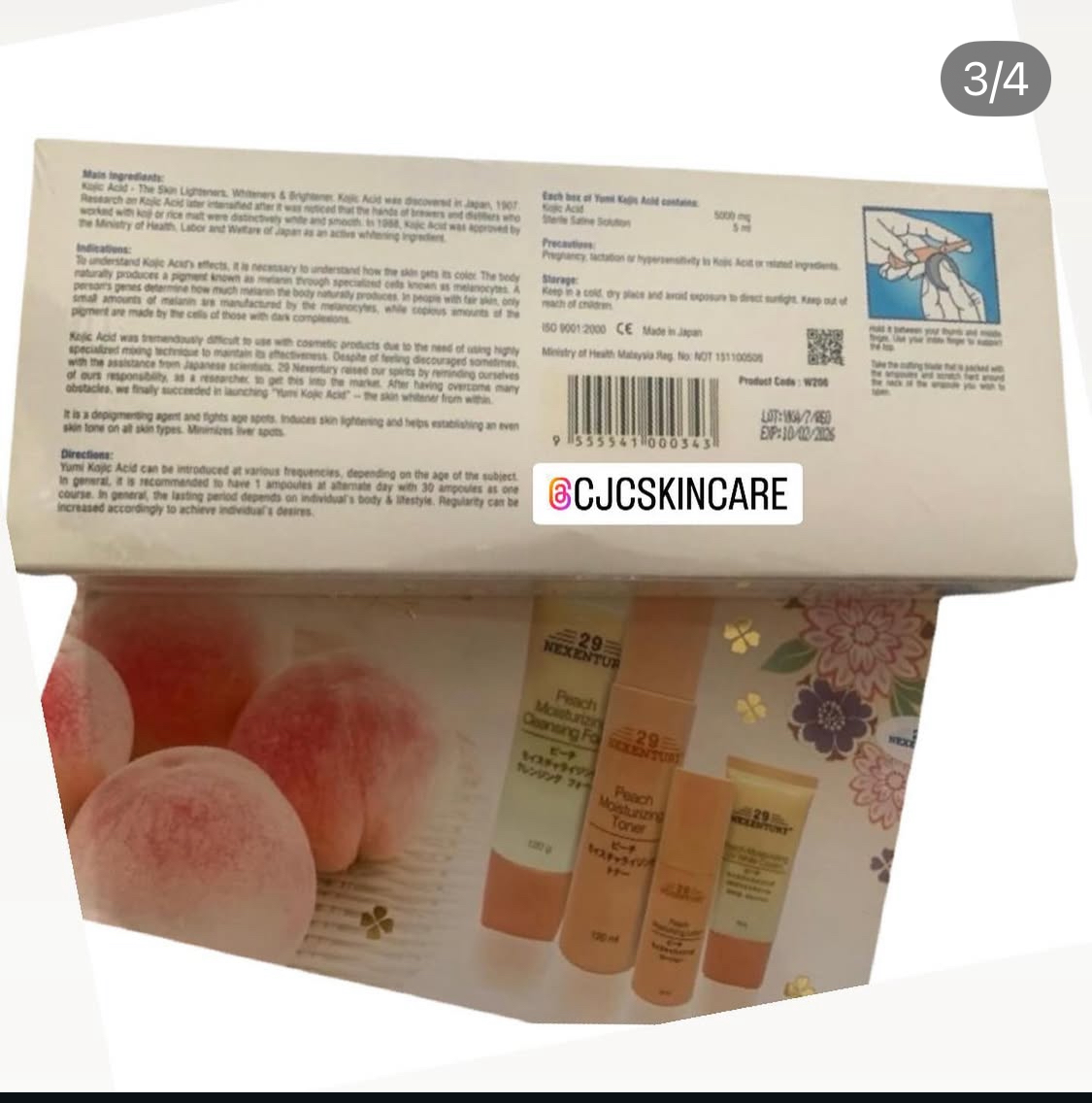 Each box contains 10 vials of Kojic Acid and 10 vials of isotonic saline solution.