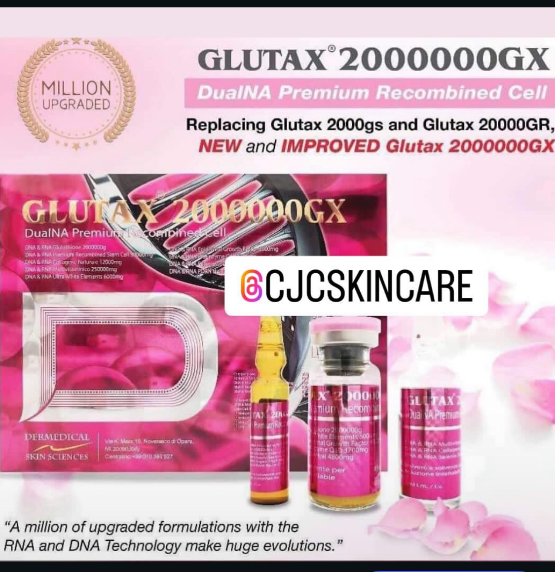 Glutax 2000000GX DualNA Premium Recombined Cell 10 Sessions Glutathione Skin Whitening
